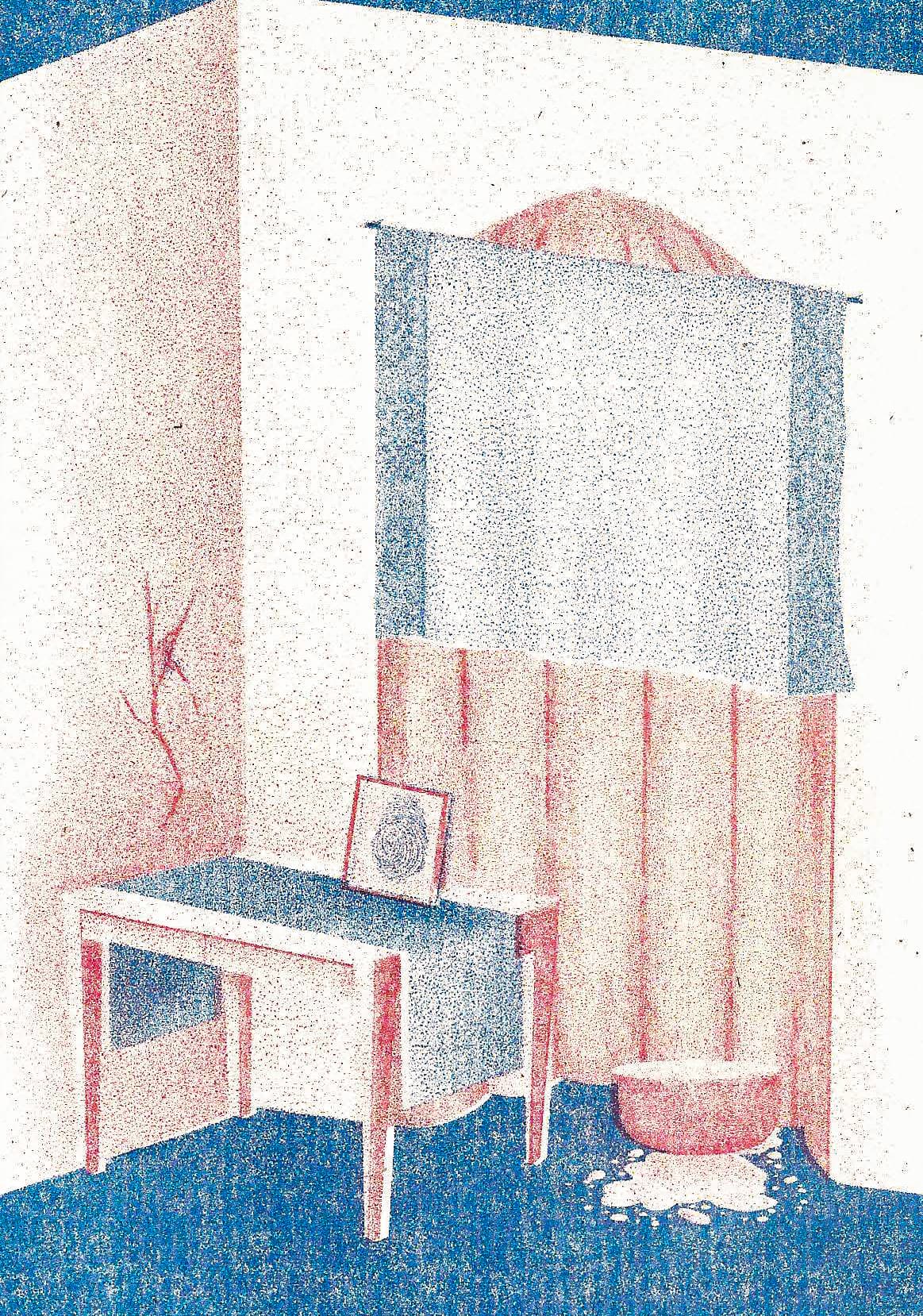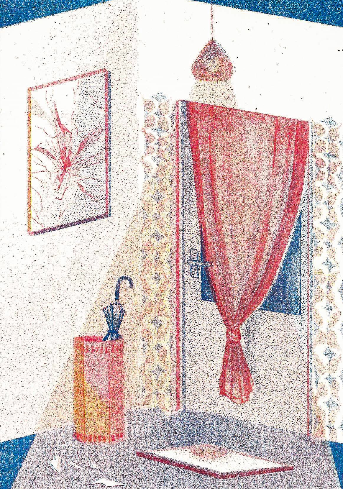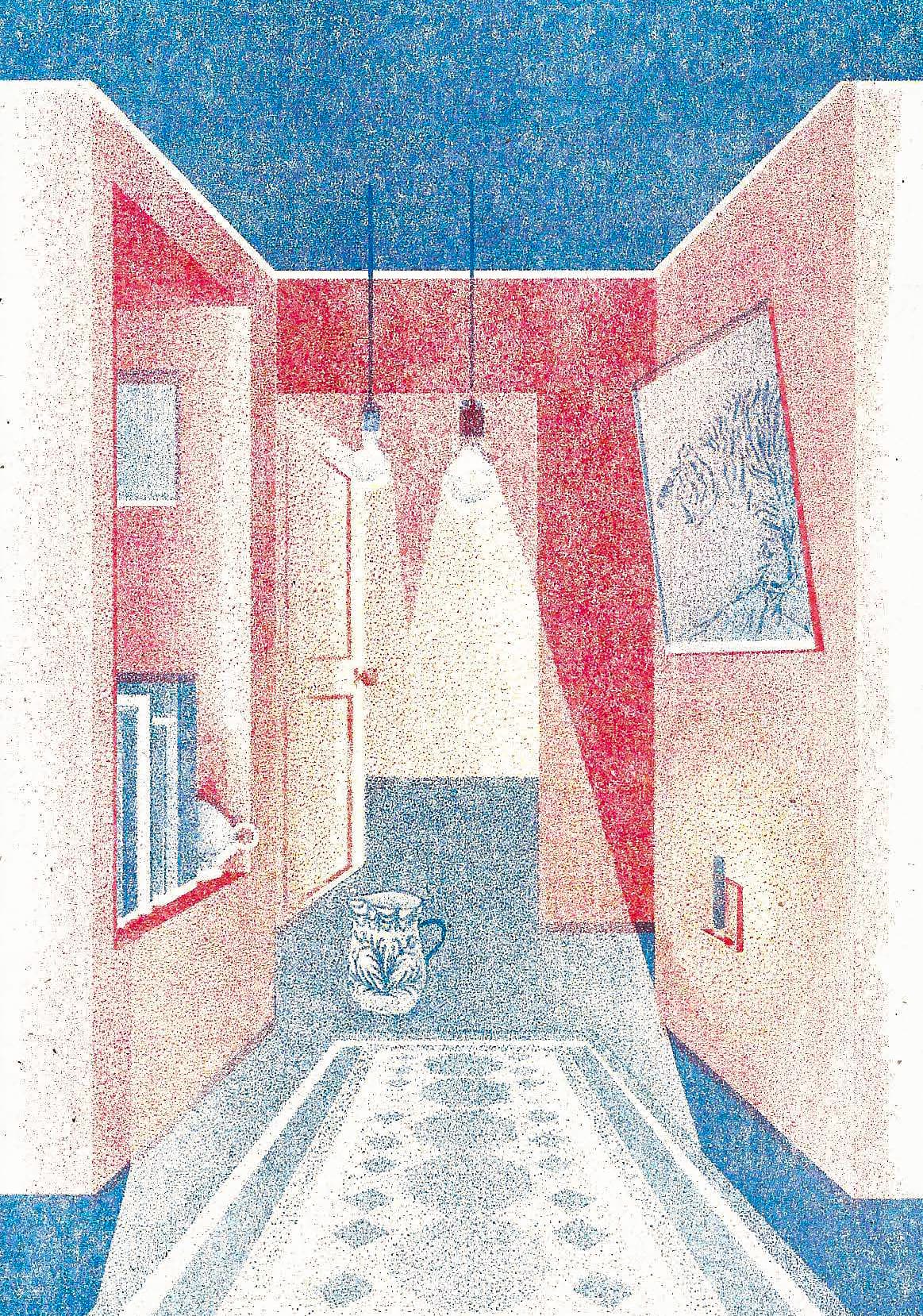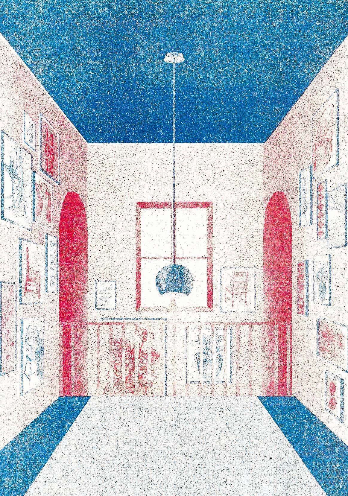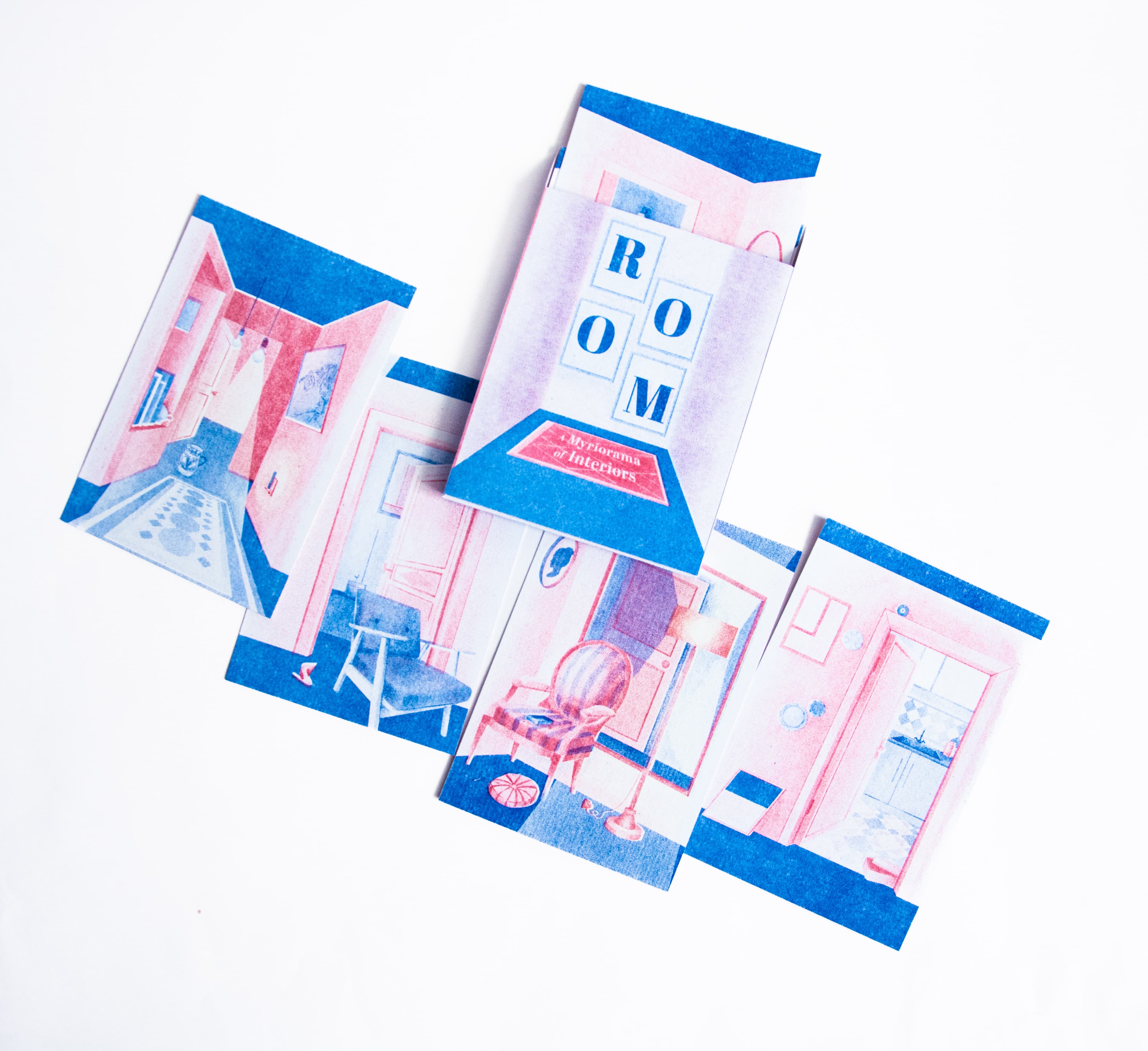 I developed a scene of an impossible interior, where depth and perspective is questioned, and included uncanny elements such as a single shoe on the ground, an open umbrella, broken vases, and furniture placed in ways that don't make sense. The player is invited to lay out the cards in any way they see fit, and develop their own story to rationalise these anomalies.